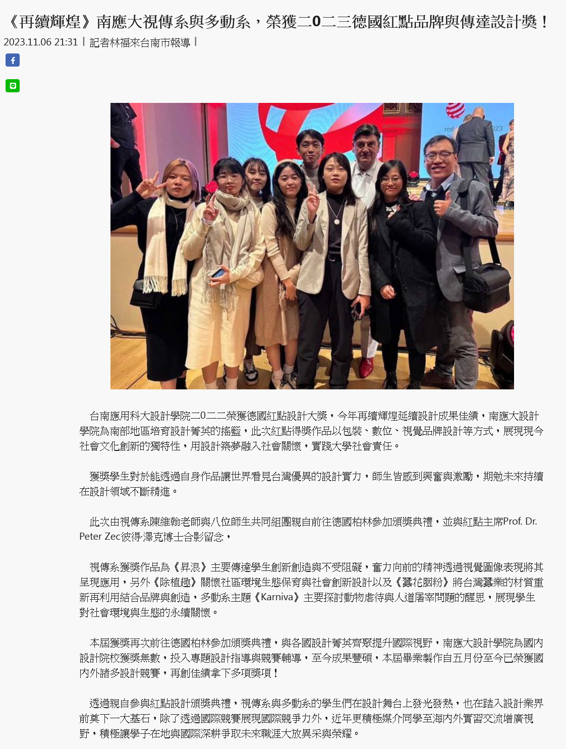 《再續輝煌》南應大視傳系與多動系,榮獲二0二三德國紅點品牌與傳達設計獎!