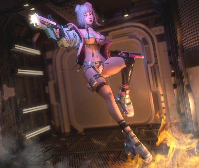 角色以兩把衝鋒槍作為主要武器,擅長運用這些武器進行精準射擊和快速機動,是一位威脅力十足的賽博龐克戰士。晁子杰以純熟的遊戲美術功底,為南應大獲得偌大的榮譽,值得嘉獎。
